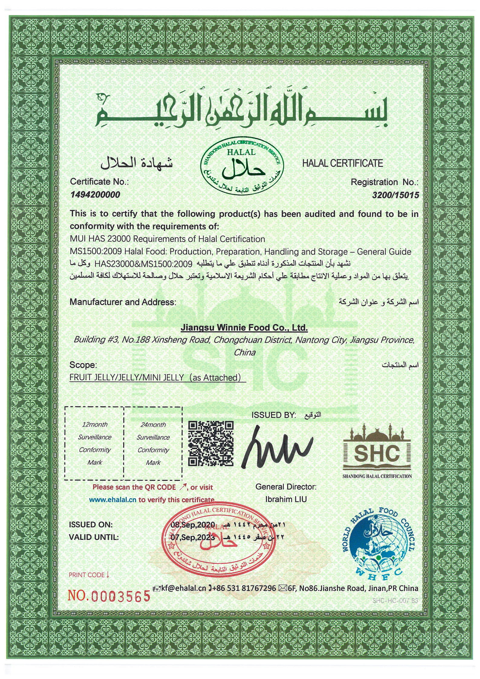 Obtivemos as duas certificações mais importantes para produção e exportação de alimentos, uma para o sistema ISO 2000 e outra para o sistema HACCP. O que é mais surpreendente é que conseguimos a certificação Halal, trazendo mais opções para mais consumidores muçulmanos.